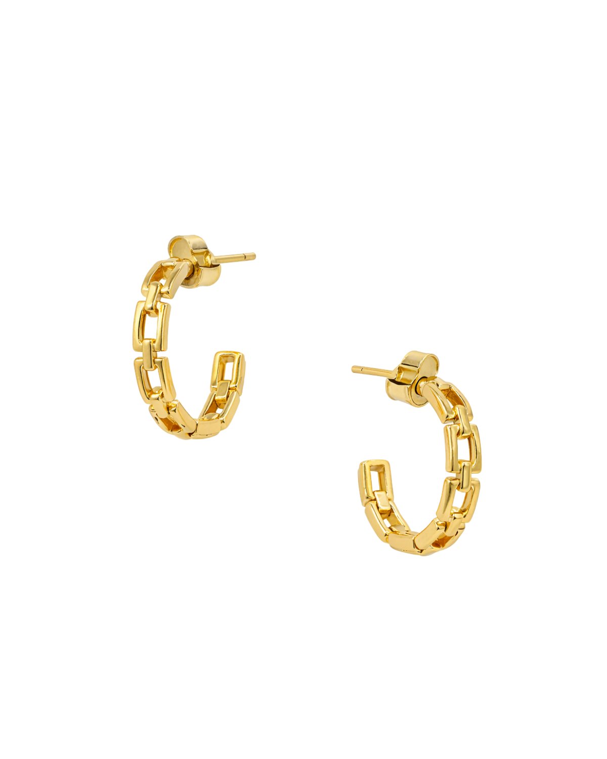 Aretes tipo argolla con diseño de eslabones que combinan la estética clásica con un toque urbano y contemporáneo.