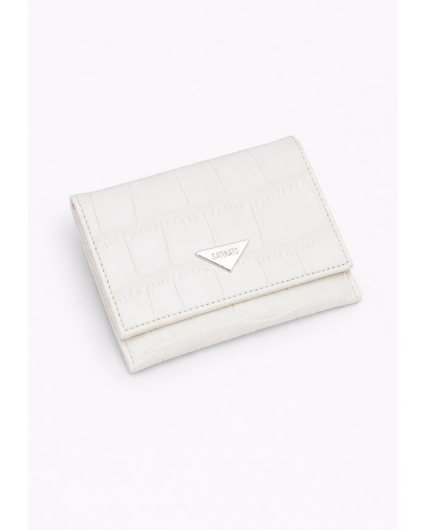 Billetera compacta en tono marfil con textura tipo croco y acabado elegante.